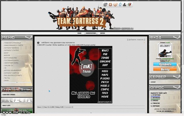 Новости кибер спорта Форум Чат Файлы Правила сервера Заработок в интернете Раскрутка сайта БаннероОбмен
